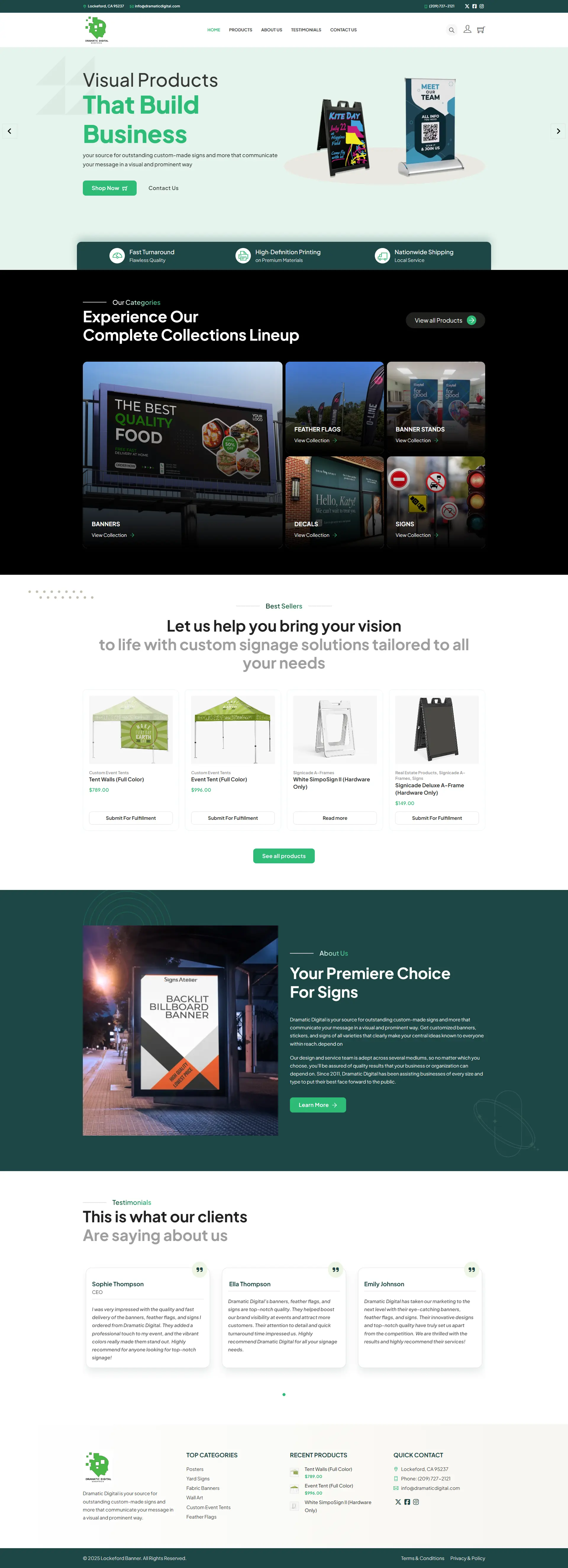 Dramatic Digital is a Sacramento-area sign & print shop established in 2011, offering a broad range of custom-visual-media—from banners and decals to vehicle graphics and yard signs. The website presents their full-service design and production capabilities, emphasizing quality, local service, and wide-format graphic solutions.